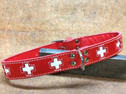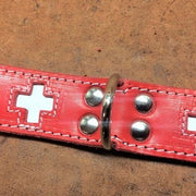 Collare e guizaglio per cane Modello San Bernardo in cuoio rosso e pelle bianca- SPESSORE 4CM -