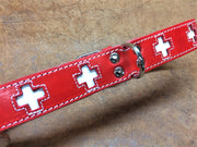 Collare e guizaglio per cane Modello San Bernardo in cuoio rosso e pelle bianca