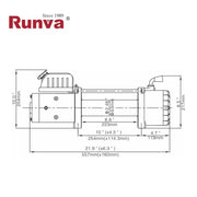 Verricello elettrico industriale RUNVA 10.000 libbre - 4.536 kg, 24 V con controllo wireless.