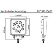 LED work light | flat | 1710 lumens | 12-24v | TRC522P0403