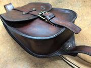Marsupio zaino a tracolla per bikers indistruttibile, doppie cuciture e cuoio 4 mm. il migliore Italiano Toscano tinto a mano