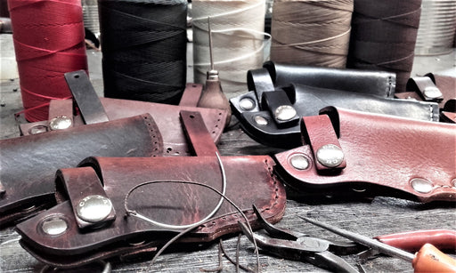 Leather knife holder, porta coltello in cuoio a sgancio rapido cucito a mano con rivetti in ottone nikelato FATTO A MANO Made in Italy Sku: PB10 Br...
