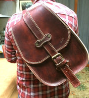 Marsupio zaino a tracolla per bikers indistruttibile, doppie cuciture e cuoio 4 mm.